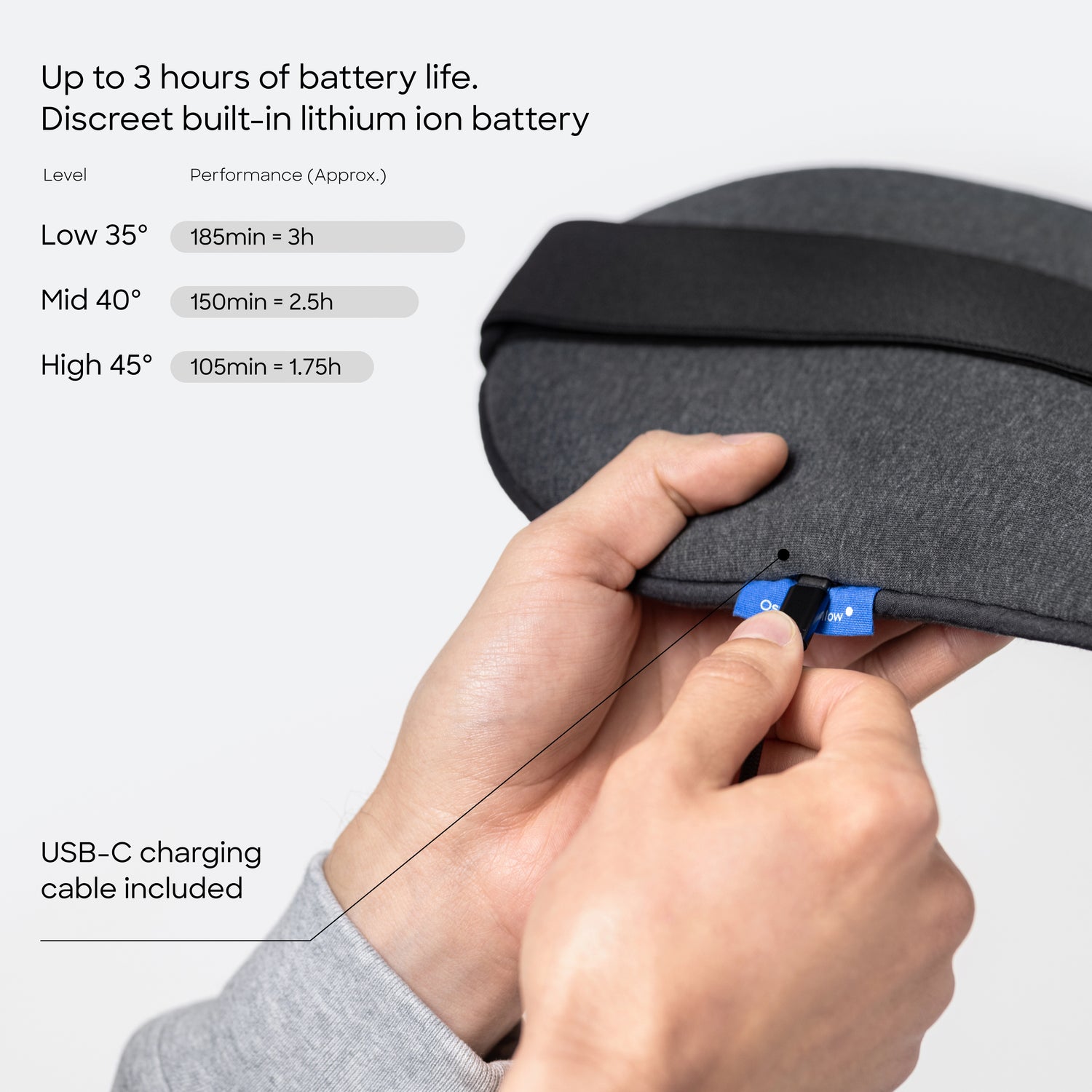 On the highest setting, it reaches a maximum temperature of 45°C (113°F) — the standard recommended level of heat that safely provides effective relief. However, personal preferences and sensitivity to warmth may vary, so we suggest starting on a lower setting and adjusting gradually until you find the level that feels best for you.