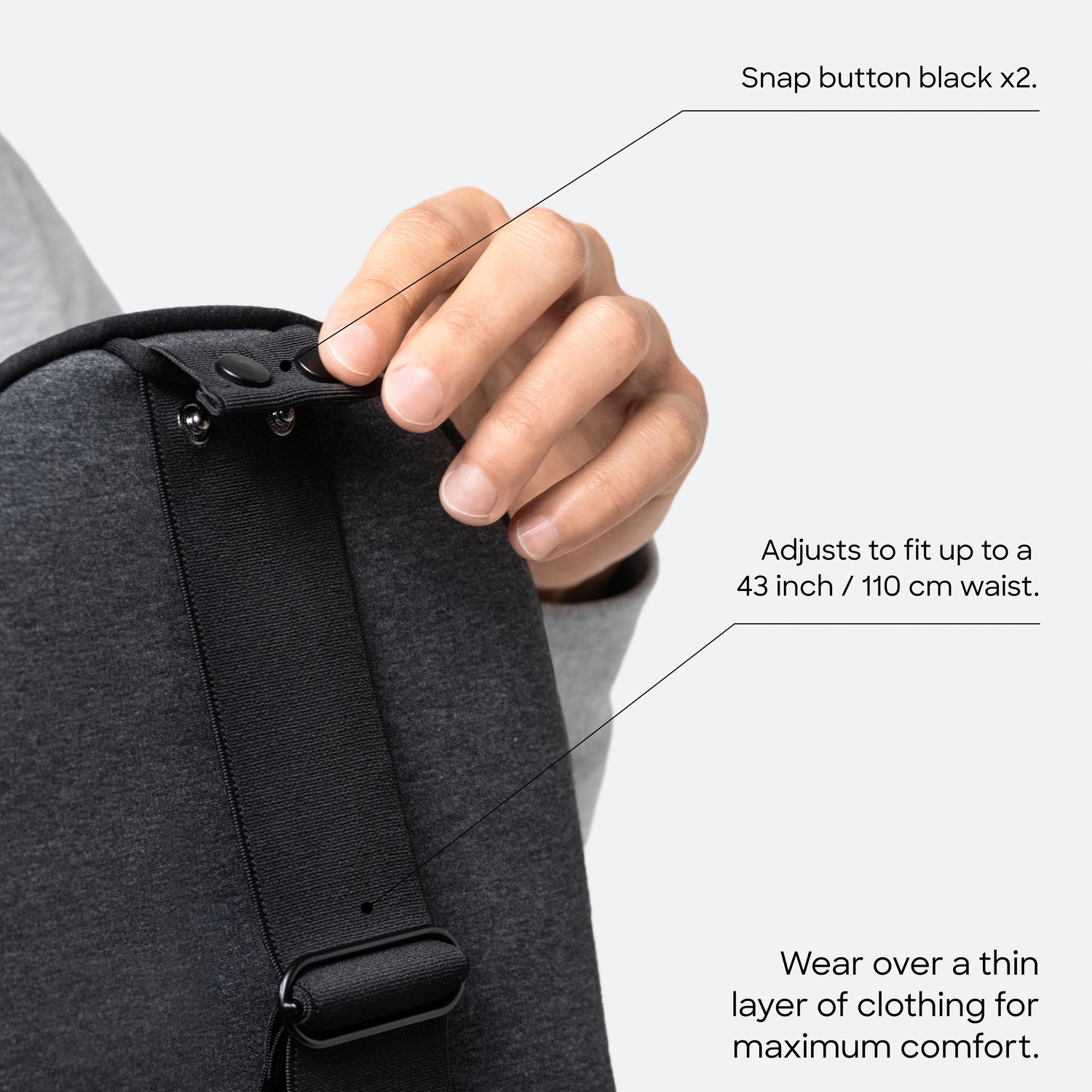 - Use the snap closure to secure it comfortably in place.